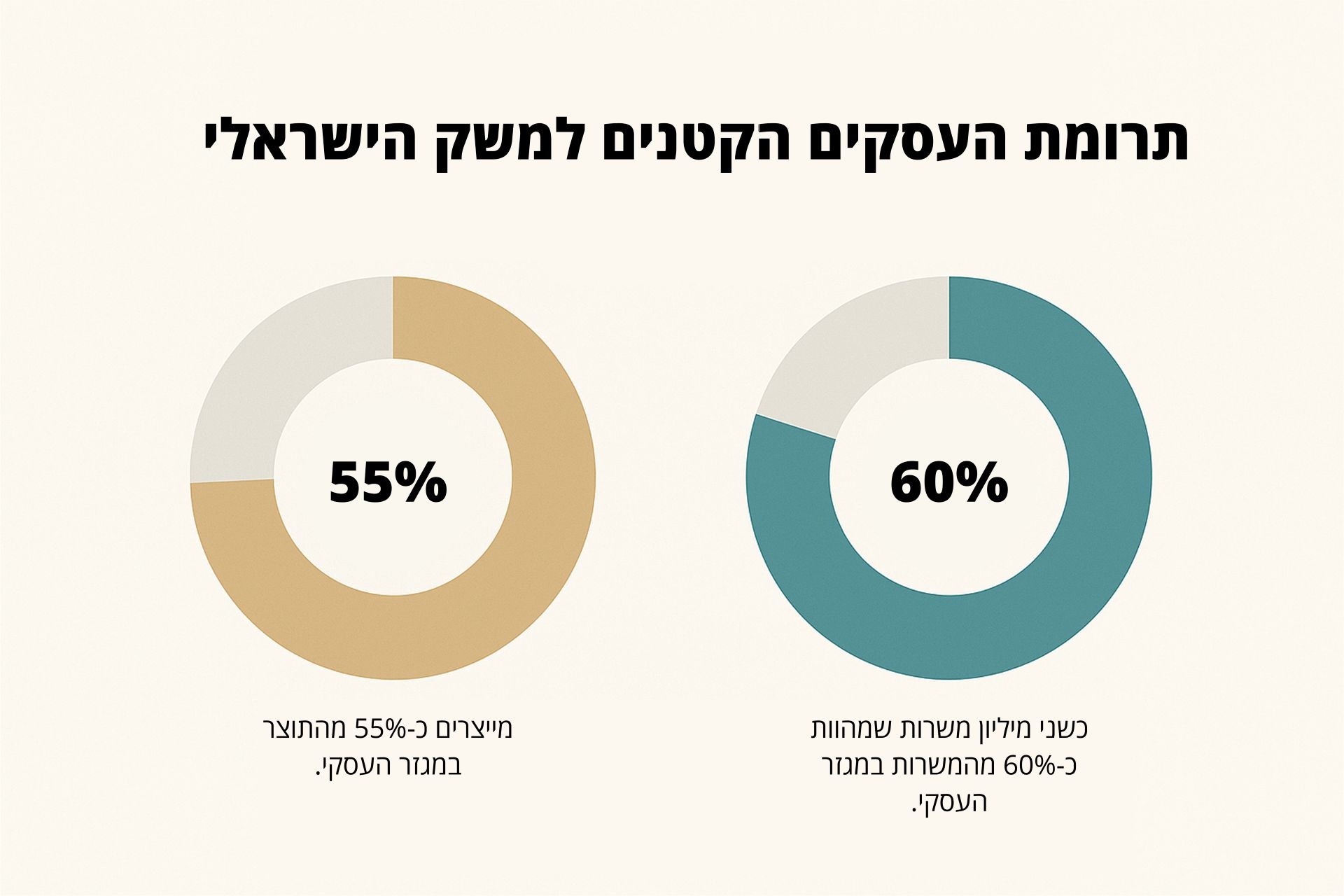 משרות, לרבות העסקה עצמית של עצמאים, שמהוות כ60%- מהמשרות במגזר העסקי. כמו כן הם מייצרים