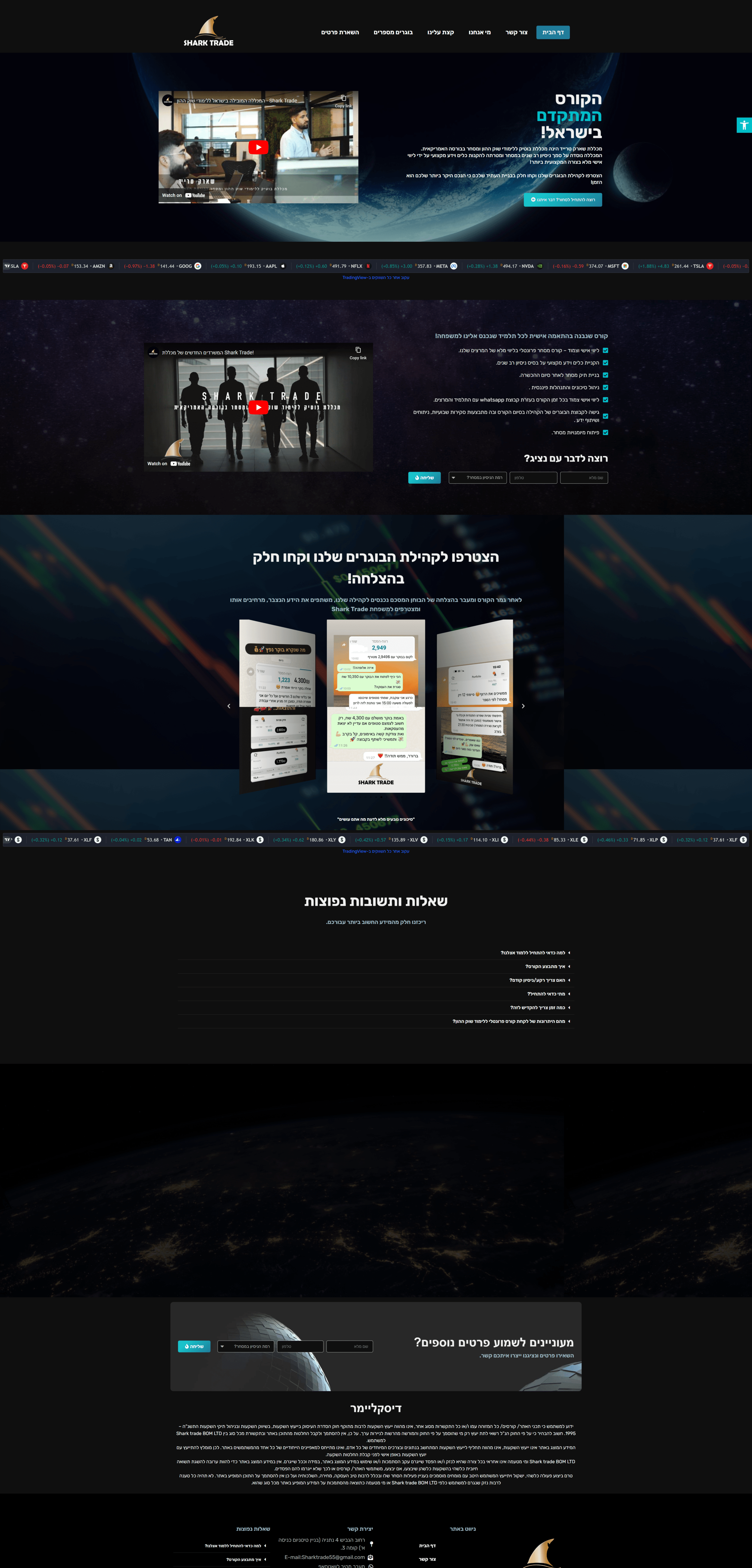 בנייה ועיצוב אתר "SHARK TRADE" מסחר